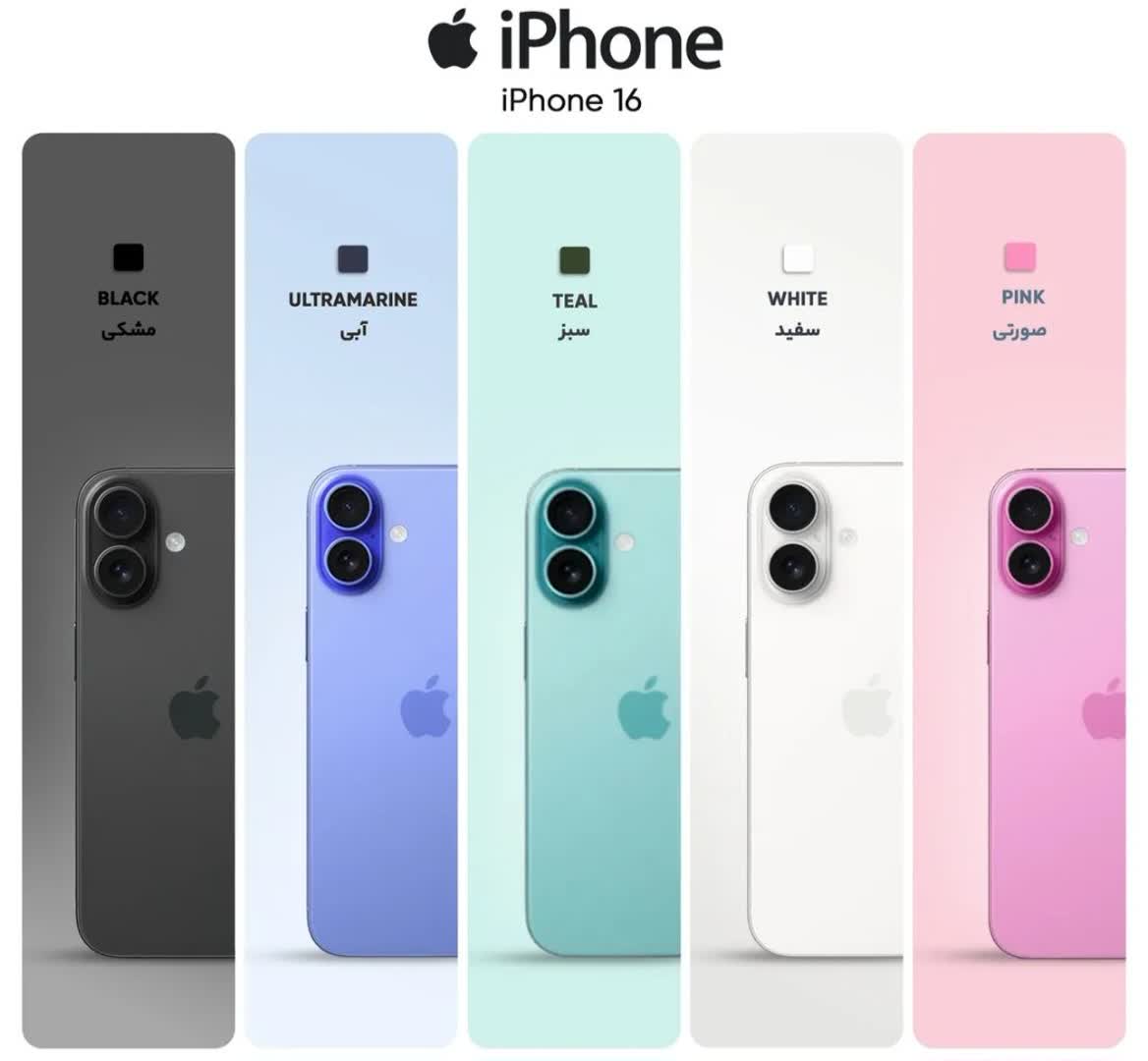 رنگ سفید-آبی-مشکی / · نمایشگر: 6.1 اینچی با فناوری Super Retina XDR OLED· پردازنده: Apple A18 Pro· حافظه: رم 8 گیگابایت/حافظه داخلی 128 گیگابایت· دوربین اصلی: دوگانه 48 مگاپیکسل + 12 مگاپیکسل· دوربین سلفی: 12 مگاپیکسل· باتری: 3561 میلی آمپر ساعت/ توان شارژ 25 وات· تعداد سیم کارت: دو سیم کارت